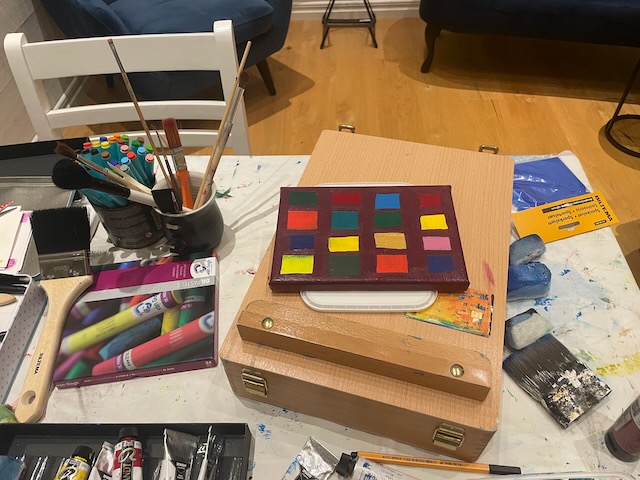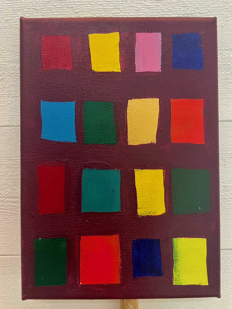 En liten skiss, som inte tog lång lång tid sammanlagt att måla, även om jag behövde fördela processen över några dagar för att känna in nyanser, ordning på färger och storlek på rutor.